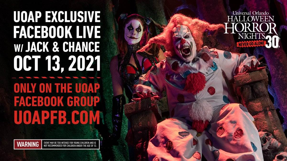 - Universal Orlando will be hosting a Facebook Live event with Jack and Chance, two of the many Halloween Horror Nights icons from throughout the years.