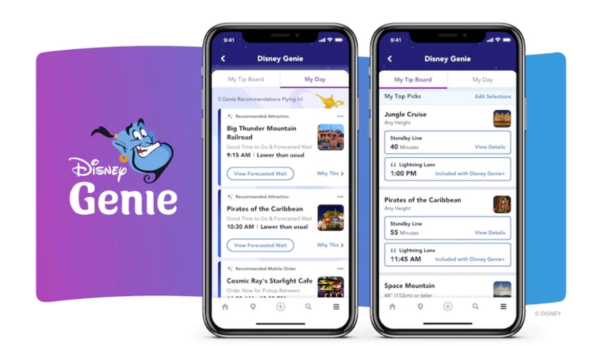 - Built right into the My Disney Experience app, Disney Genie service will help you create your best Disney day inspired by your interests and activities. It includes a personalized itinerary feature that saves you time by seamlessly and smartly mapping out your special day with updates that continue from morning to night.