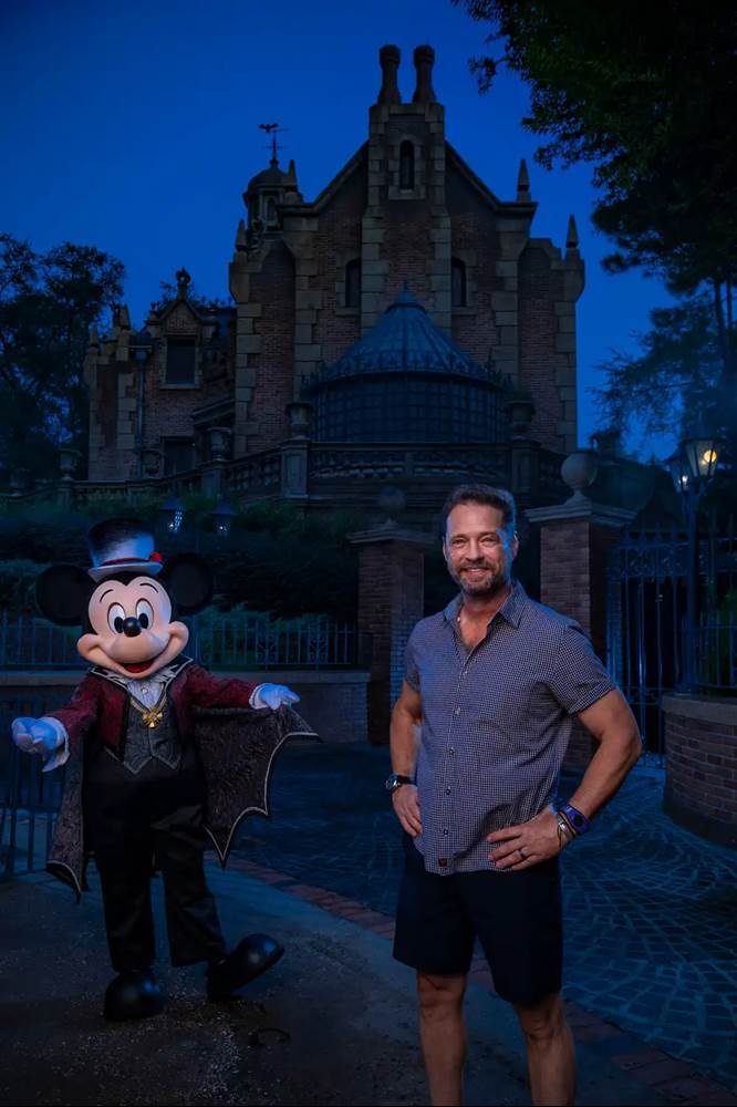 Actor and director Jason Preiestley recently made a visit to the Walt Disney World Resort, and posed for a picture outside The Haunted Mansion.