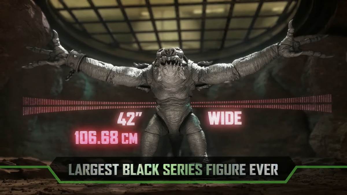 - This gigantic action figure is in the six-inch scale of The Black Series, and will be the largest toy ever created in that popular Hasbro line, with an arm span of 42 inches wide and a whopping 45 points of articulation.