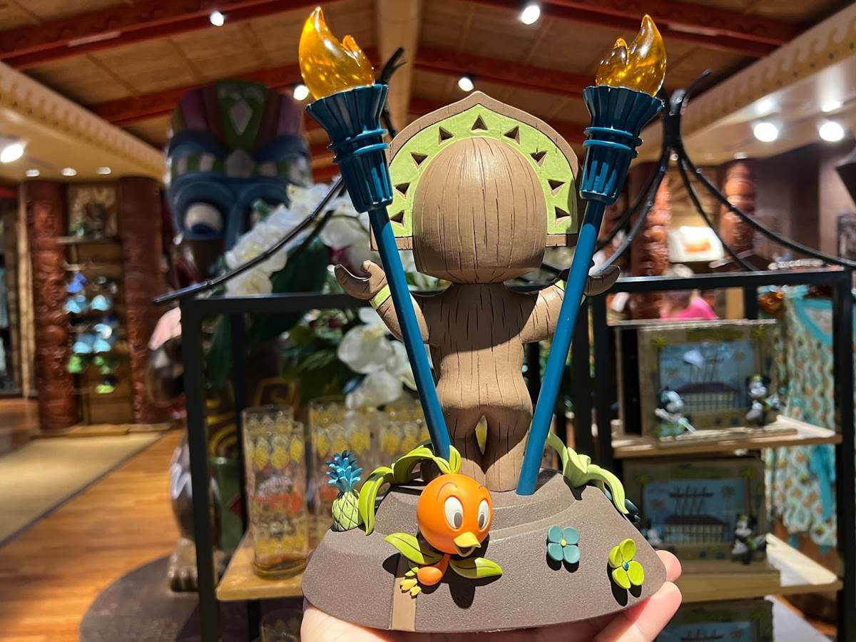 While there’s always been a version of this Tiki statue available to purchase, this green tinted version is new, and it features the Orange Bird on the back.