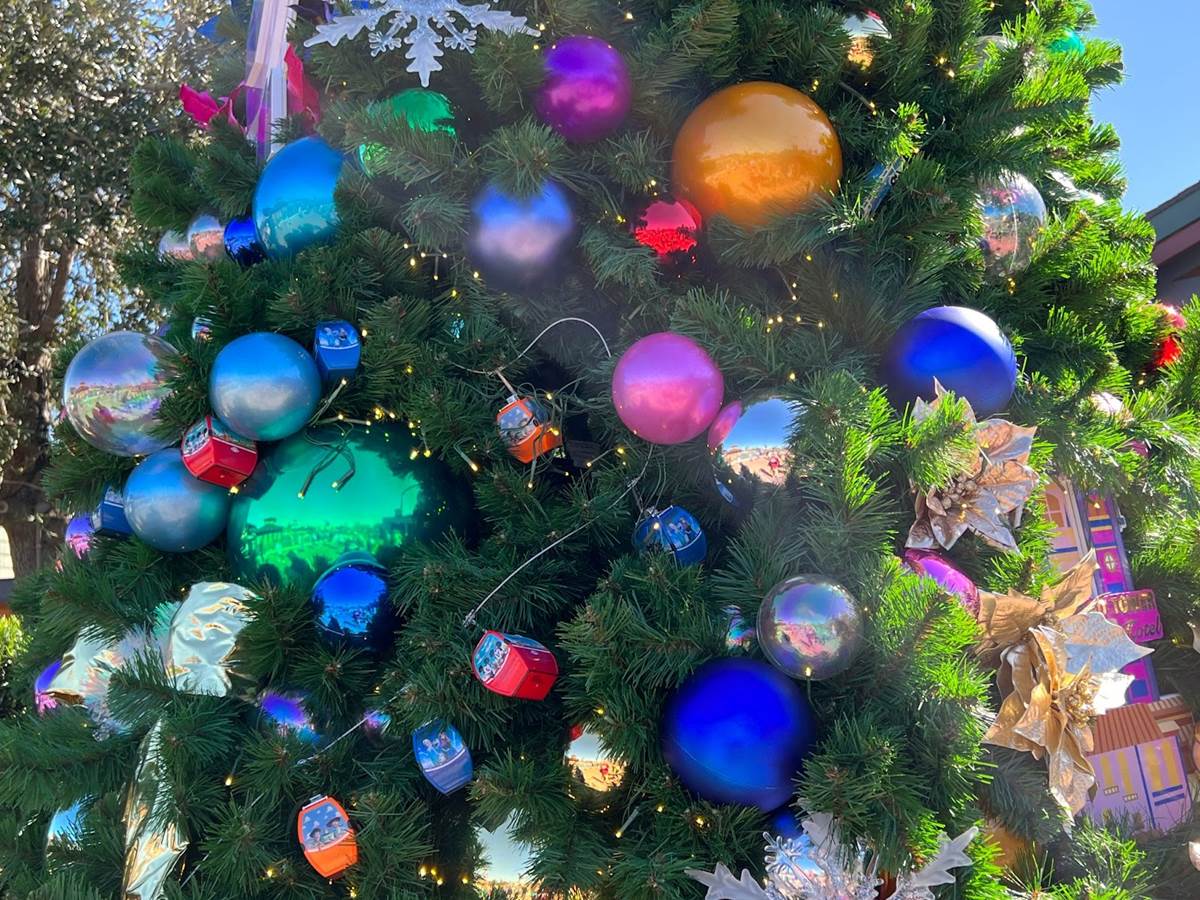Next we have a Disney Parks themed tree, featuring artistic ornaments of the four main Walt Disney World park icons, along with the Disney Skyliner ornaments that you can purchase in stores.