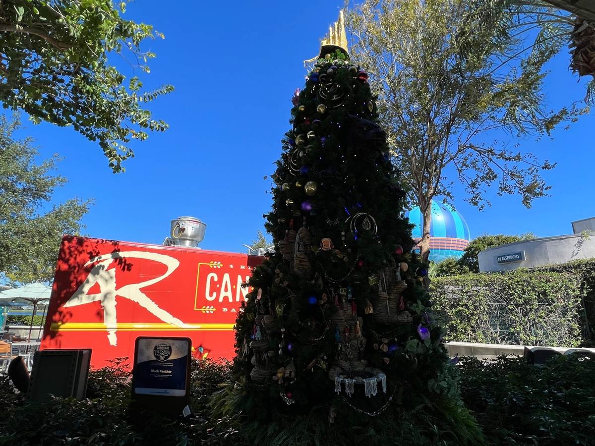The next couple of trees are located in the Food Truck Park area of the West Side. This one is Black Panther themed.