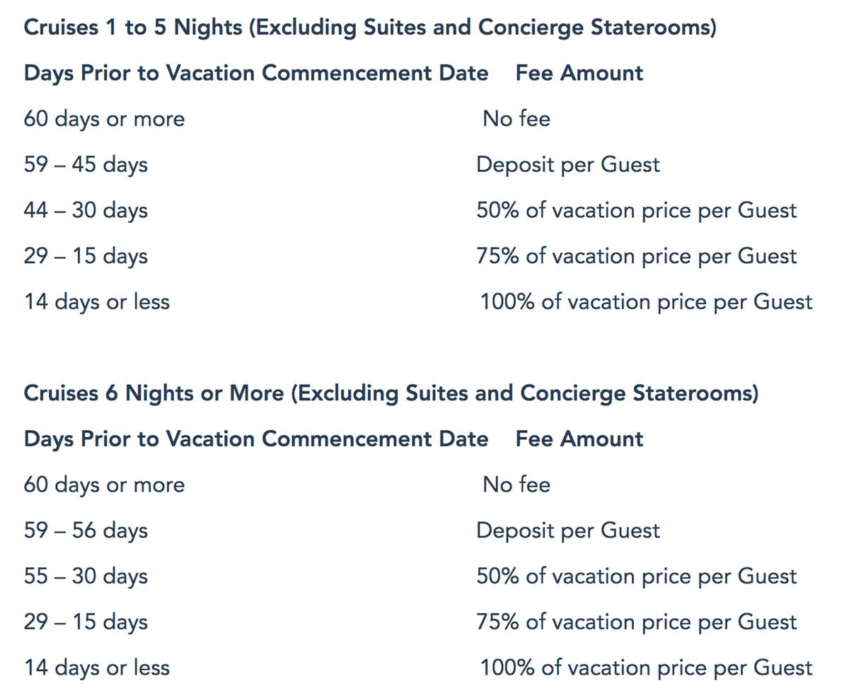 - In addition, Disney Cruise Line is also temporarily relaxing their cruise cancellation fee schedule for sailings through May 31, 2022, as you can see below: