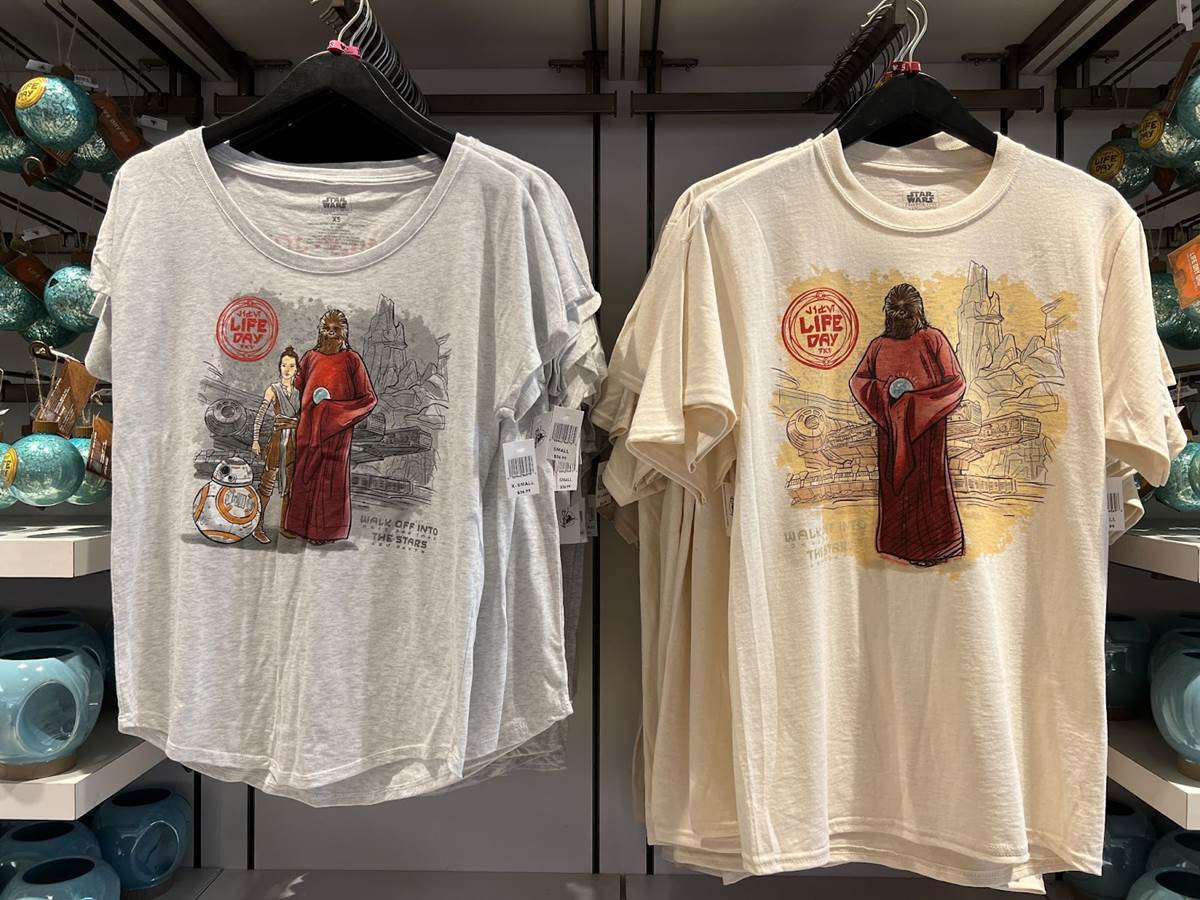 - Get dressed up in your holiday best with these men’s and women’s Life Day T-shirts, available for $36.99 each.