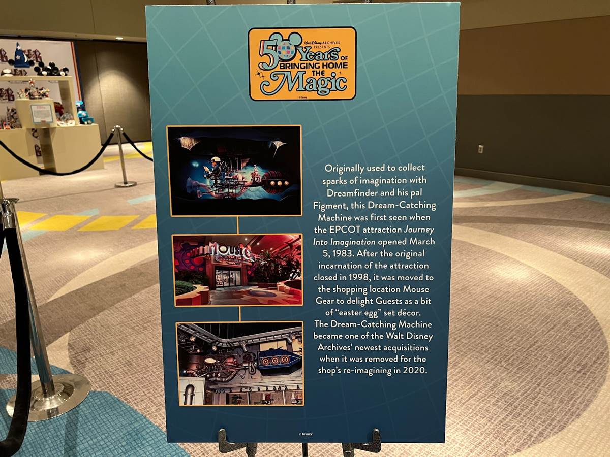 In the center of the exhibit was a real treat for old EPCOT fans: the old Dream-Catching machine from Journey into Imagination that decorated MouseGear for many years.