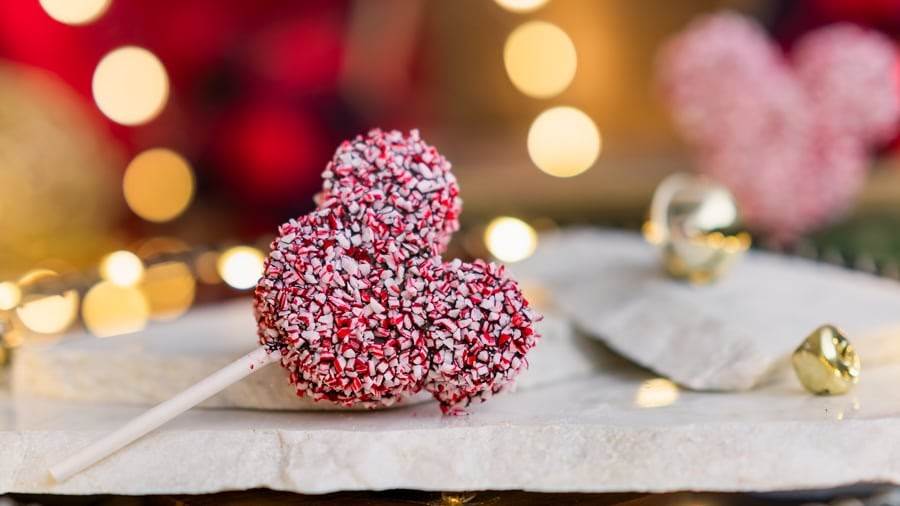 - Peppermint Marshmallow Pop – Mickey-shaped marshmallow pop dipped in dark chocolate and coated with crushed peppermint candy