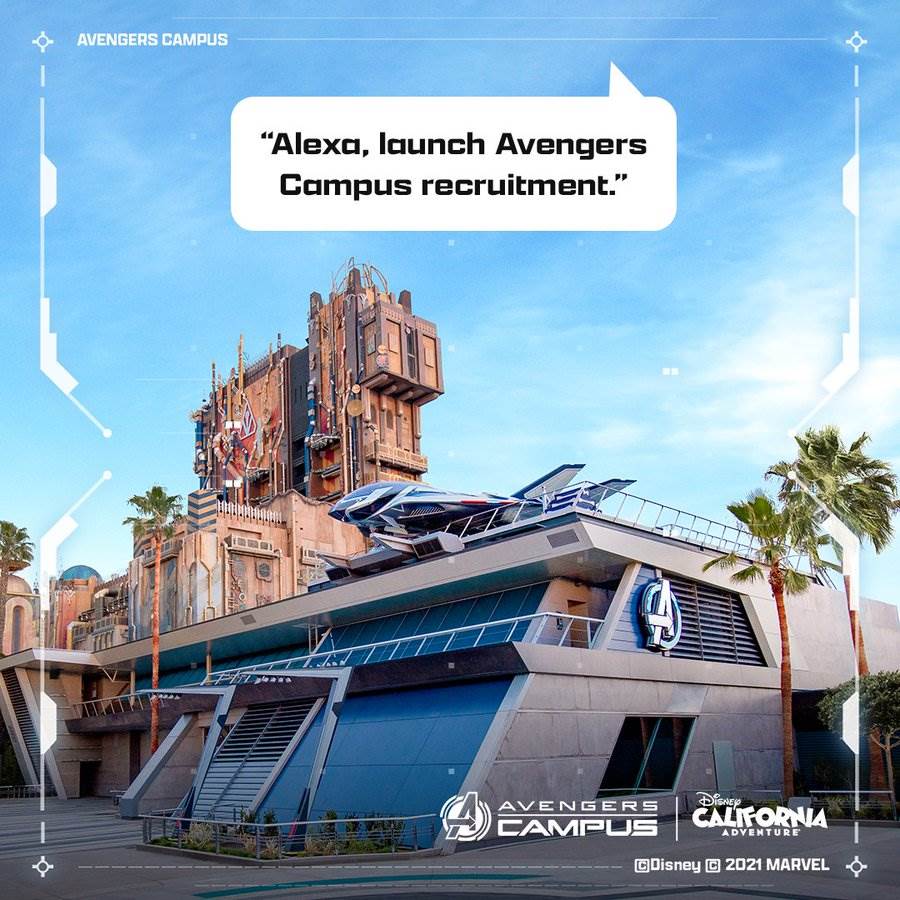 - Just say “Alexa, launch Avengers Campus recruitment” and you’ll be taken on an interactive audio tour of the thrilling missions and heroic encounters you can experience at Avengers Campus.