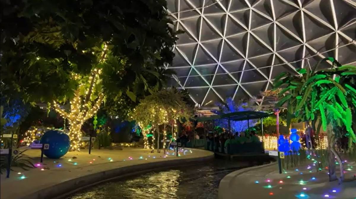- While the first few scenes of the attraction remain unchanged, it’s in the greenhouses where the attraction makeover truly (and quite literally) shines! Festive lighting has been installed throughout, from string lights in the trees and throughout the structure of the greenhouses, to small little lights embedded in the sand of the first greenhouse.