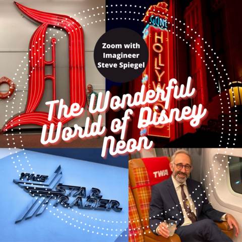 The Museum of Neon Art and Steve Spiegel, Story Editor Executive for Walt Disney Imagineering will present a one-night-only Zoom event, “The Wonderful World of Disney Neon,” on December 9th at 7pm showcasing the history of luminous tubing in Disney Parks.