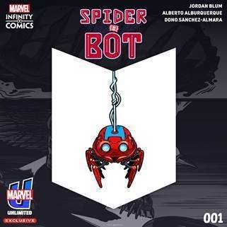 Spider-Man's battle-ready Spider-Bots have come to Marvel Unlimited! “Spider-Bot #1” is now available on the app in MU’s exclusive Infinity Comic format. The 12-part weekly series is written by Jordan Blum with artist Alberto Alburquerque and color artist Dono Sanchez-Almara.