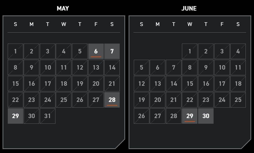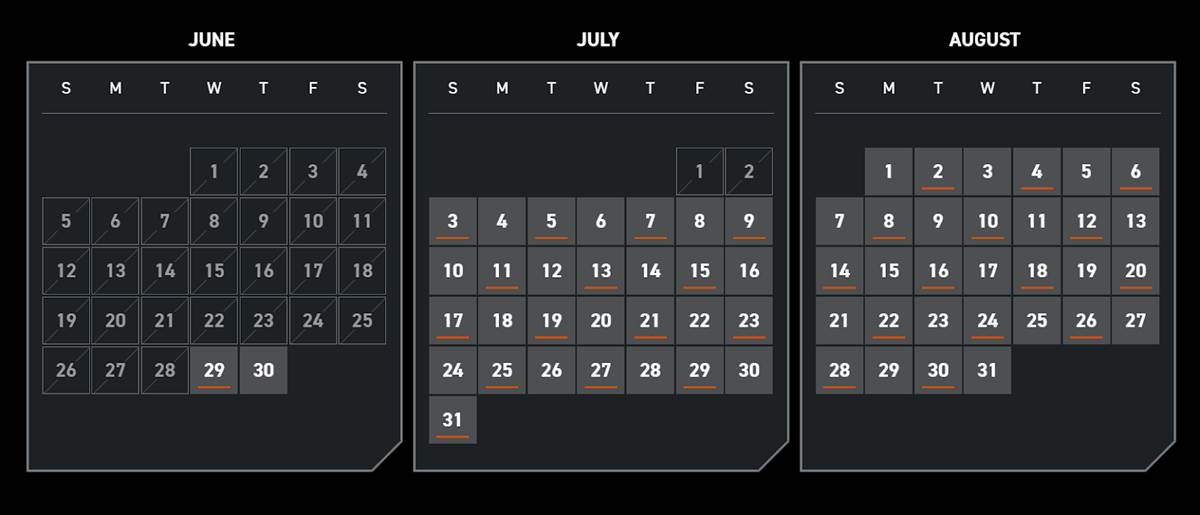 - There are also a few dates available in April, May and June, followed by full availability from July 3 on.