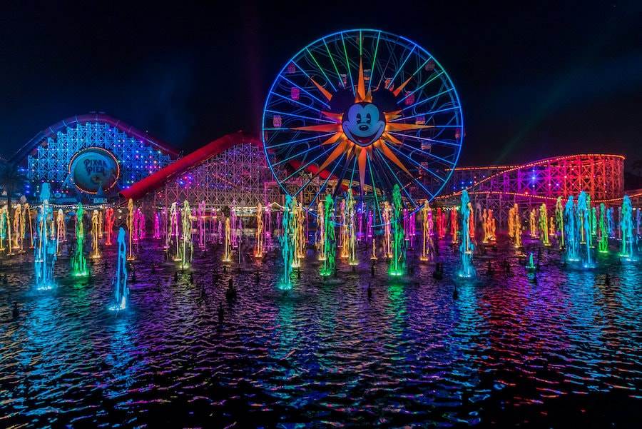 - Across the esplanade, more water comes alive this spring in Paradise Bay at Disney California Adventure. World of Color, a breathtaking display of music, fire, fog and laser effects, with Disney Animation projected on one of the largest water screens in the world. The beautiful carousel of color where beauty untold is ours to behold brings the magic and fun of Disney and Pixar films to life through over 1200 jets of water and light, all set to a soaring soundtrack. Favorite Disney stories with memorable sequences of animation and music, including scenes like WALL-E and Eve zipping through the cosmos and Pocahontas exploring just around the riverbend are just a few of the adventures waiting to return in the spring.