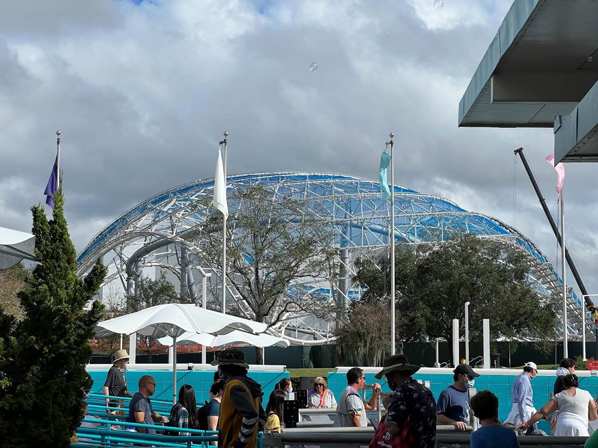 Blue netting continues to make up the canopy of the exterior portion of the attraction, soon to be replaced with a more permanent structure similar to what appears on the attraction at Shanghai Disneyland.