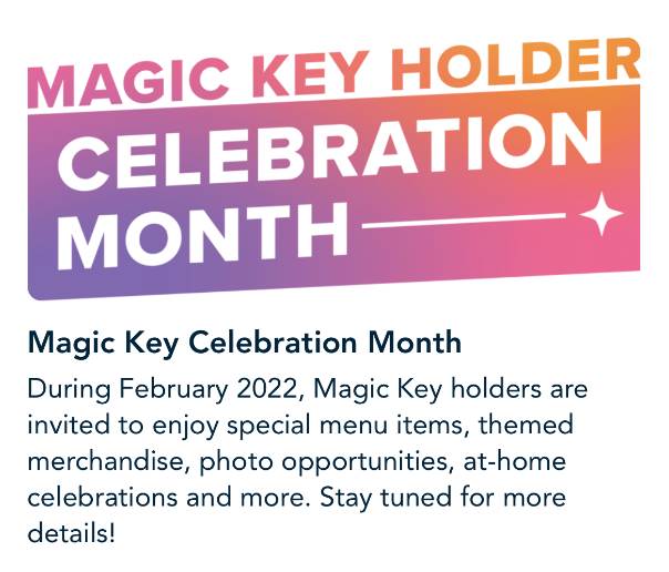 - In February of 2022, Disneyland Magic Key Holders will be able to partake in special menu items, themed merchandise, photo opportunities, at-home celebrations and more curated for the most dedicated Disneyland fans.