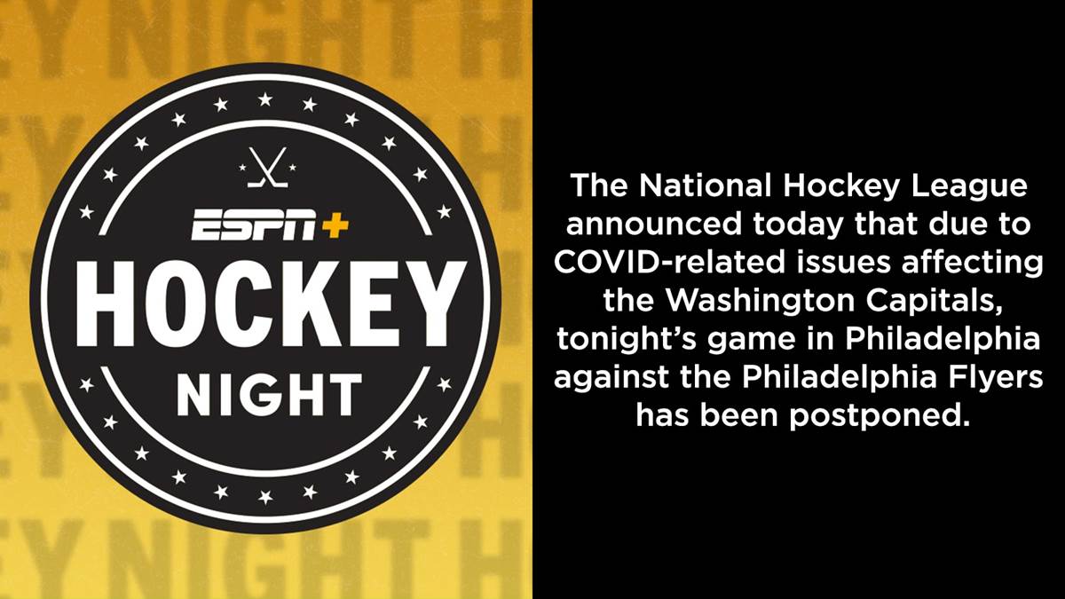 The NHL has also postponed tonight’s game between the Washington Capitals and the Philadelphia Flyers, which was also set to air on ESPN+. The decision was made due to COVID-related issues affecting the Capitals.