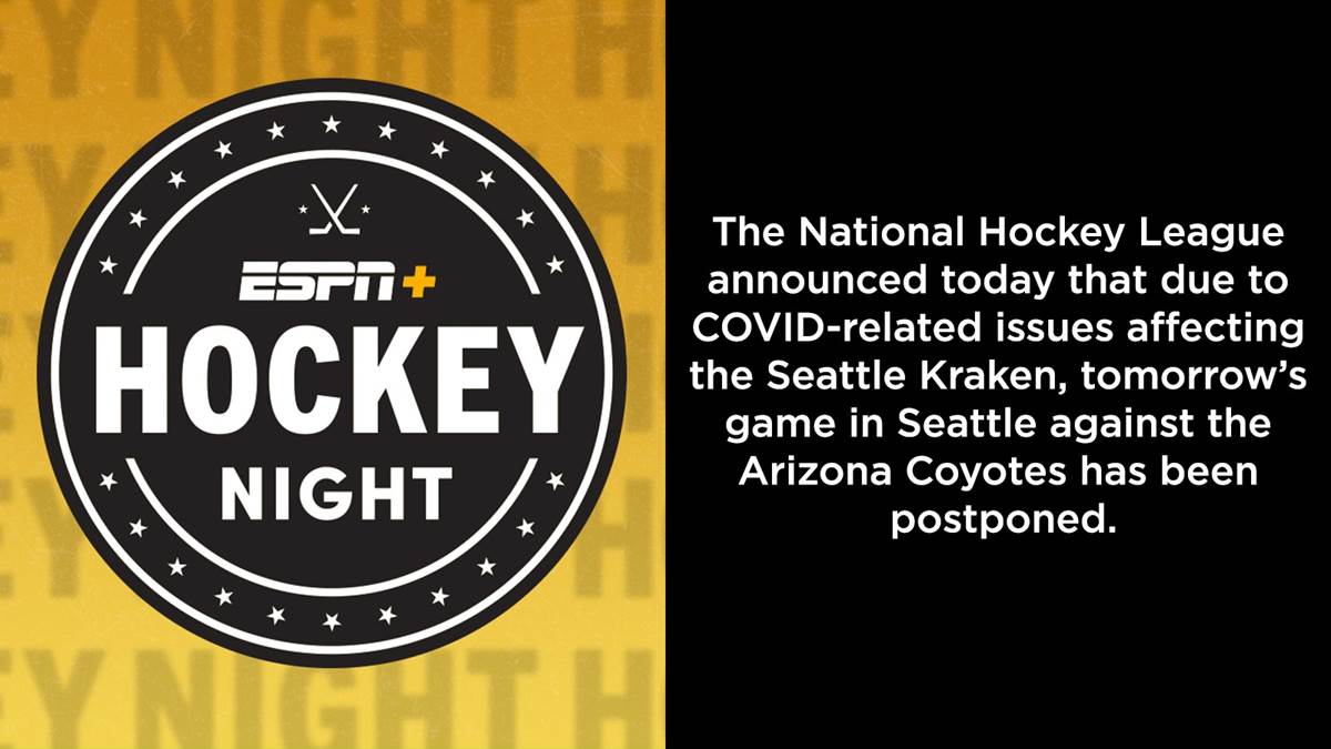 The NHL has postponed tomorrow night’s game between the Seattle Kraken and the Arizona Coyotes, which was scheduled to air during ESPN+’s “Hockey Night.”