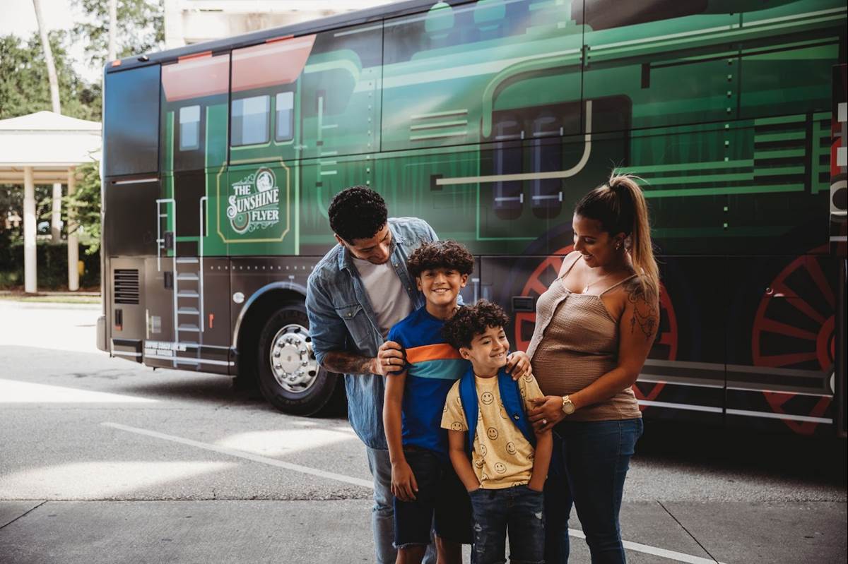 - The service aims to alleviate the stress of airport transportation and kickstart the magic of the family vacation from the moment they board the bus: