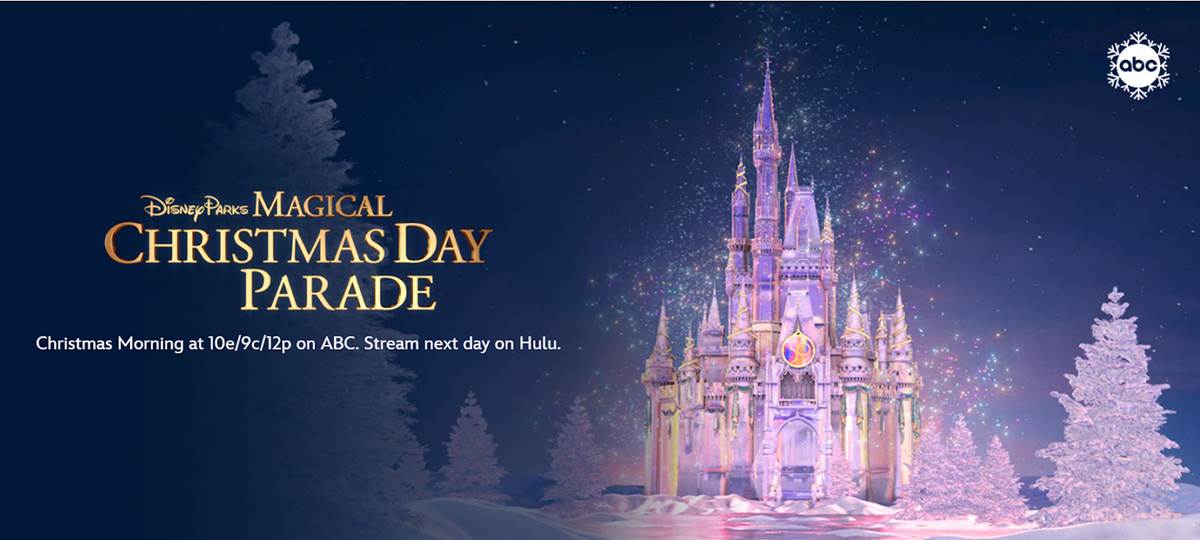 - The Disney Parks Magical Christmas Day Parade airs on ABC Christmas morning at 10:00AM E / 9:00AM C/P, and will be available to stream the next day on Hulu.