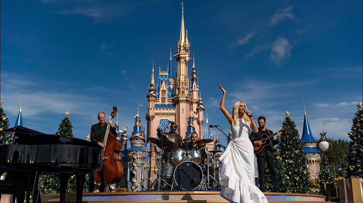 Kristin Chenoweth performs her rendition of “Have Yourself a Merry Little Christmas” in front of Cinderella Castle.