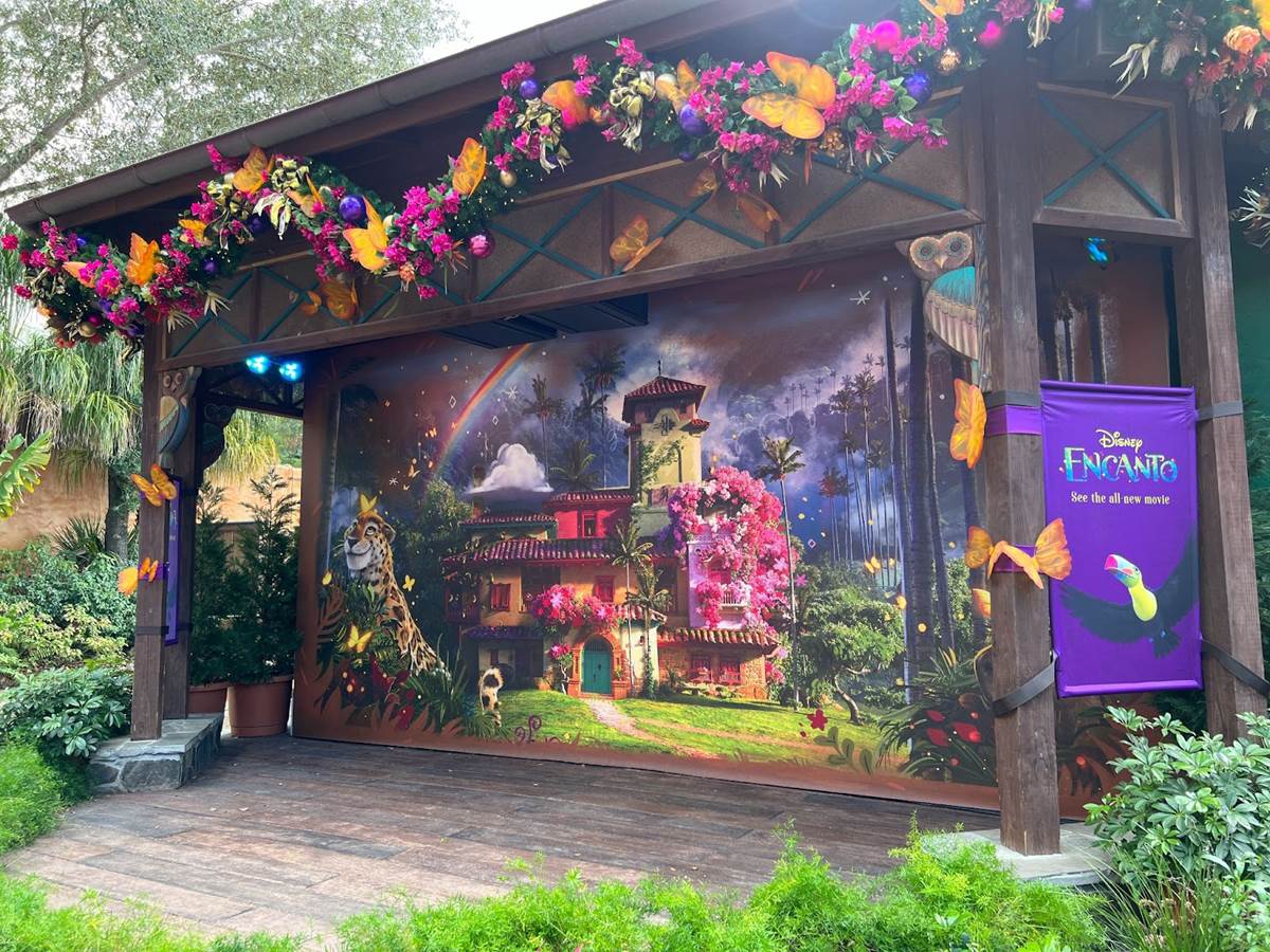 The stage on the path into Dinoland USA is currently celebrating Encanto.
