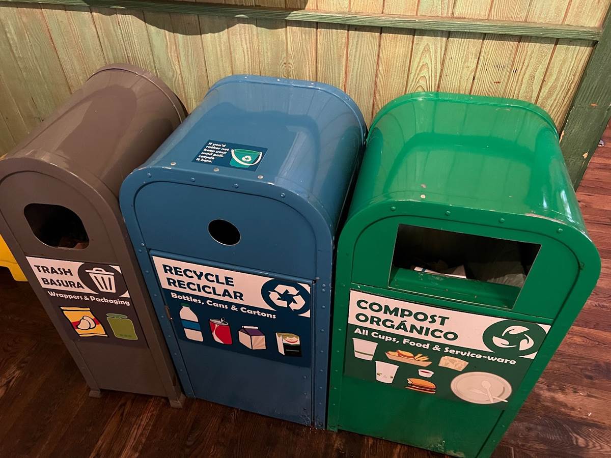 Restaurantosaurus is also one of the locations at Walt Disney World that is using three trash cans: one for trash, one for recycling, and one for compost.