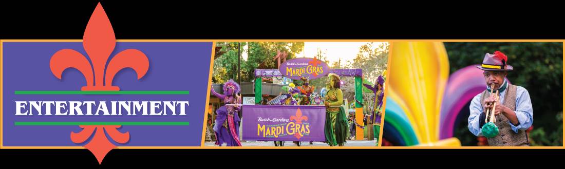 Select times during event hours. Limited quantity of beads available. - Brass Band – Enjoy Bourbon street beats and jazz classics as the Brass Band gets the party started in the Bird Gardens.