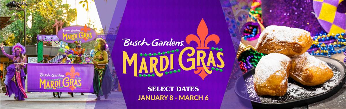 - The good times will roll at Busch Gardens as they kick off the Mardi Gras event, running on select dates from today, January 8th through March 6th.