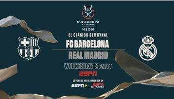 - Semifinal I: FC Barcelona vs. Real Madrid CF – Wednesday at 1:55 p.m. ET (ESPN, ESPN+, and ESPN Deportes): The 248th official ElClásico pits 13-time Supercopa champion Barcelona against 11-time winner Real Madrid, and the second match of the season between the two archrivals. ElClásico – the series between these two teams – is considered the top rivalry in the sport. FC Barcelona and Real Madrid CF are two of the most popular teams globally, and Spanish football’s most successful clubs.