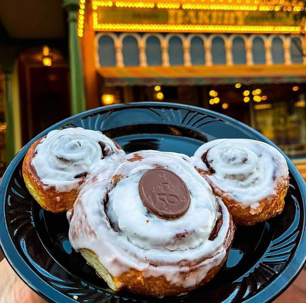 Take a trip down to the Main Street Bakery and try the 50th Anniversary Cinnamon Roll for $6.79. A new take on the original cinnamon roll sold at the bakery, now dusted with EARidescent sugar and the 50th Pressed Penny logo!
