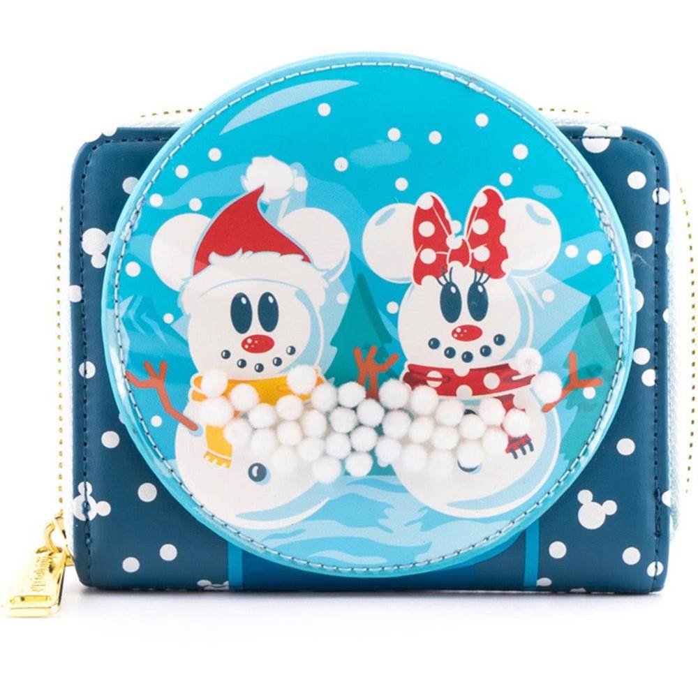 Disney Snowman Mickey and Minnie Mouse Snow Globe Zip-Around Wallet