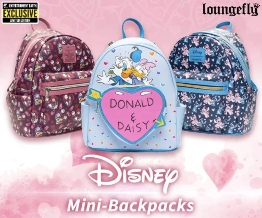 - More Loungefly mini-backpacks? Yes, please! Three brand new Disney-inspired Entertainment Earth exclusive styles will make their way to fans this spring and pre-orders are now open.