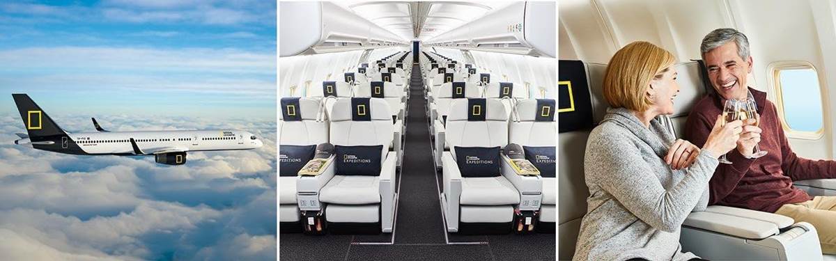 - Guests will travel aboard a National Geographic-branded private jet that will fly them directly to their destinations in comfort and style.