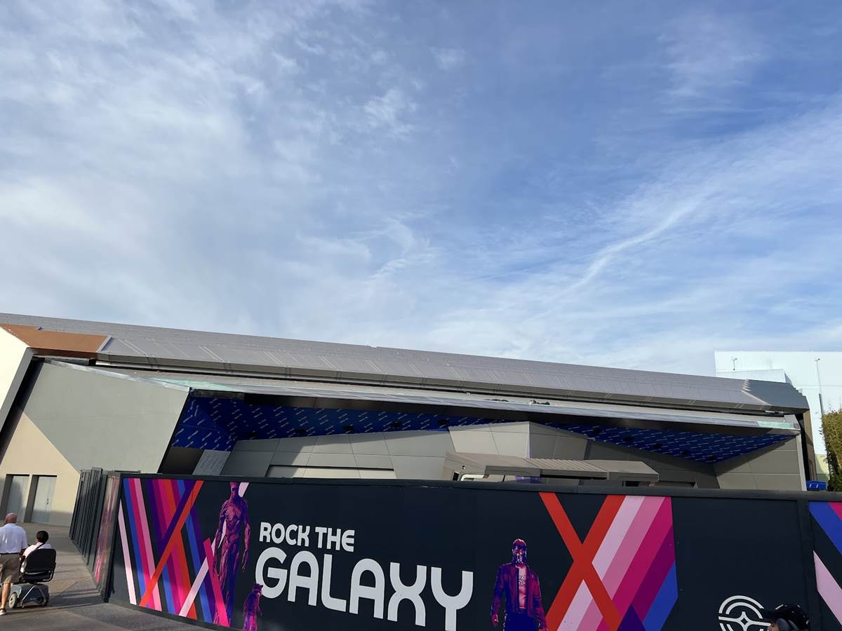 The former browns, blacks, and oranges that once were on the building have been pushed aside to make way for more space-y grays and whites. Elsewhere on the building, the Nova Corps logo has been installed on the facade, and the star in the logo will be seen throughout, including the architecture of the building, ships on display, and likely cast member uniforms.