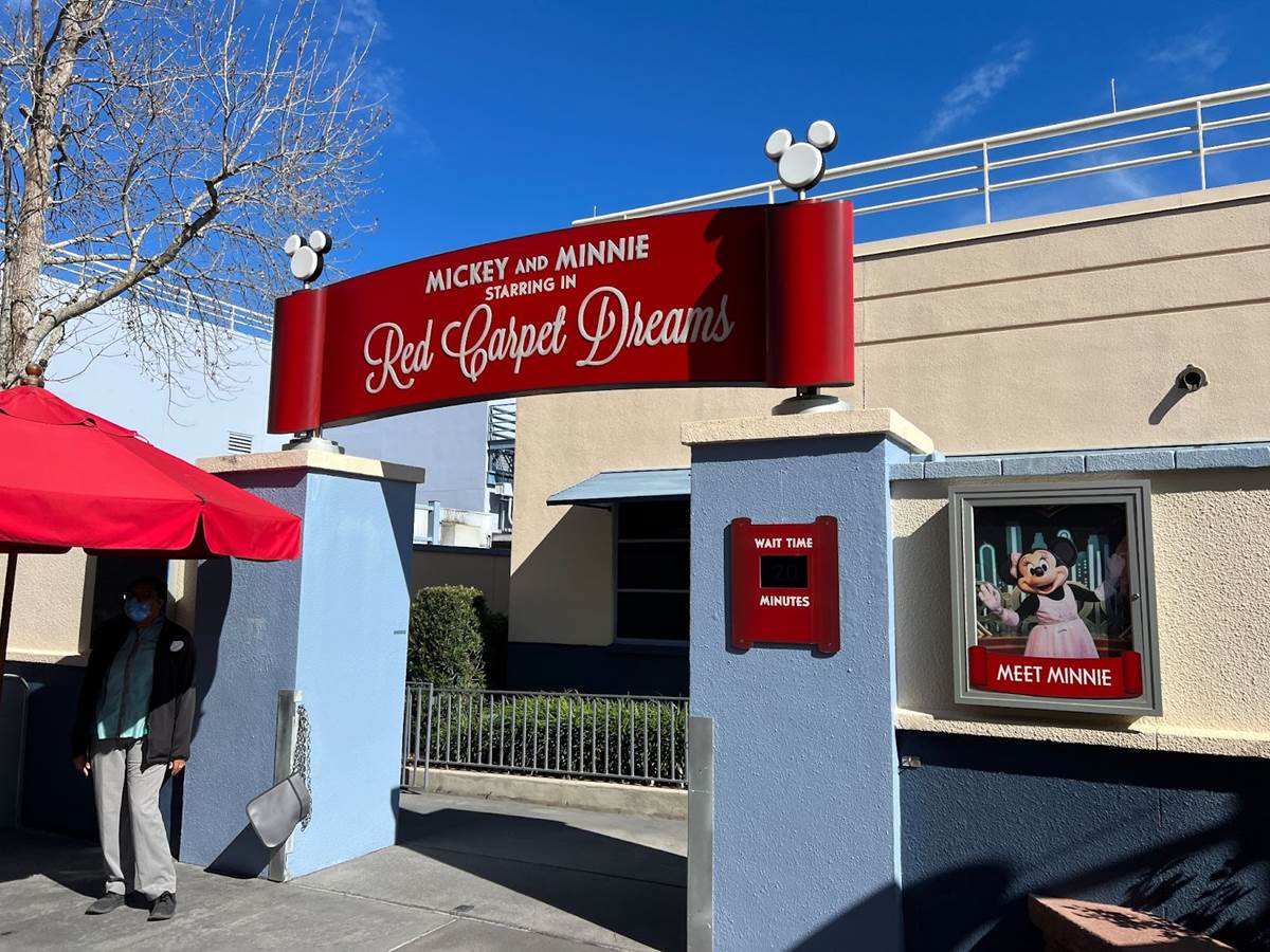 On the backside of the same building is Red Carpet Dreams. Typically, you’d be able to meet Mickey and Minnie here, but for now, it’s just Minnie.