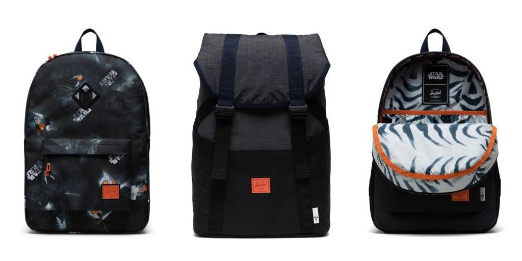 - The collection includes fabrics and colors that are inspired by her tunic, images of her wielding dual white lightsabers along with signature Herschel details like custom labels, reflective screen prints, durable rubber diamond, and Prusik cord pulls.