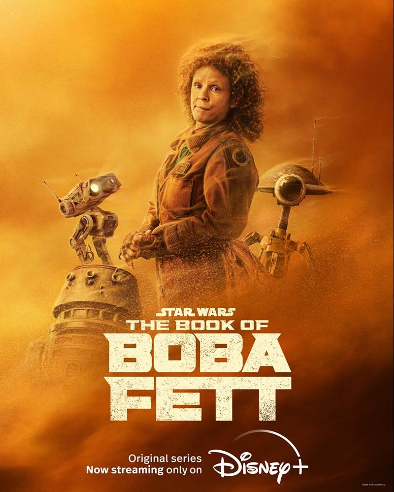 With the fifth episode of The Book of Boba Fett premiering on Disney+ last week, three characters new to the show got their own poster this week: the Mandalorian, Peli Motto and the Armorer.