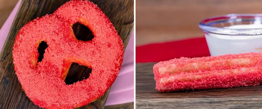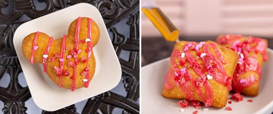 - Mickey Beignet: Mickey-shaped beignet drizzled with cinnamon candy drizzle and Valentine’s Day quins with crushed cinnamon candies