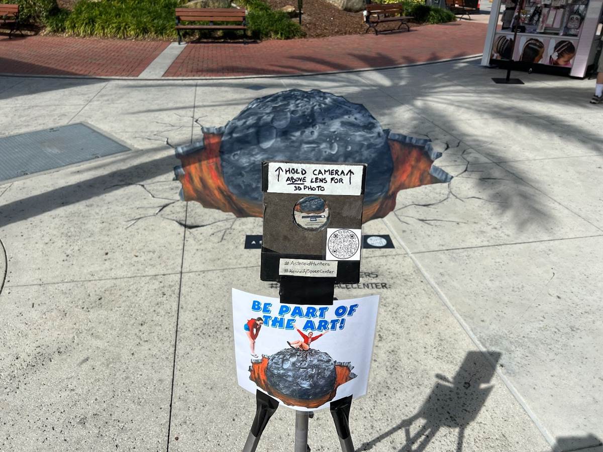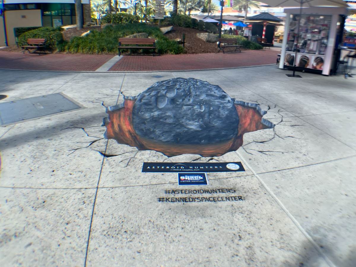 We stopped by Icon Park in Orlando today to check out a new 3D art installation, which creates an illusion of an asteroid and the aftermath of its impact, all part of a promotional campaign for Asteroid Hunters, a new IMAX film at the Kennedy Space Center Visitor Complex.