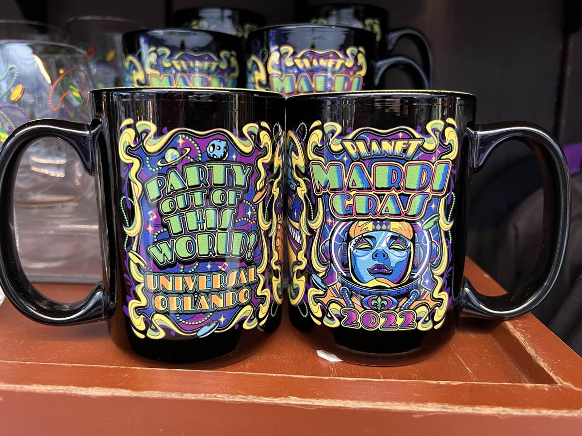 To celebrate this year’s parade you’ll find plenty of merchandise with the Planet Mardi Gras artwork, adorned on cinch-bags, t-shirts, pins, hoodies, and more. We spotted this collection of Mardi Gras Merchandise at the store located at the exit of The Bourne Stuntacular, still referred to as Cyber Image on the Universal App. The name is a remnant of the Terminator 2: 3-D attraction that would exit into the store. Though we spotted this selection at this specific location, Mardi Gras Merchandise is sold throughout Universal Studios Florida and beyond, with a Mardi Gras Voodoo Boutique also located at neighboring Islands of Adventure.