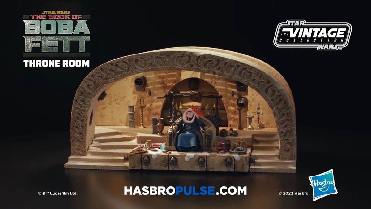 - Hasbro has announced the Star Wars: The Book of Boba Fett Throne Room playset for its 3 ¾-inch The Vintage Collection line.