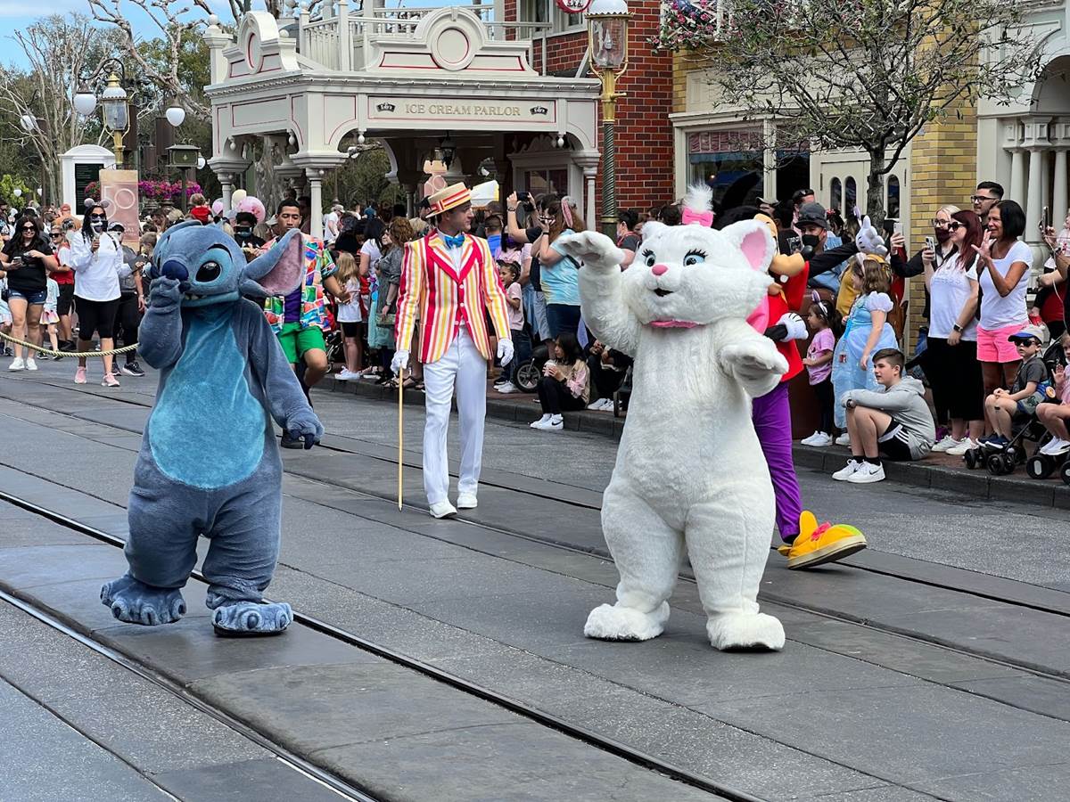 Capping off the cavalcade is Marie, Stitch, Max Goof, Bert and Mary Poppins.