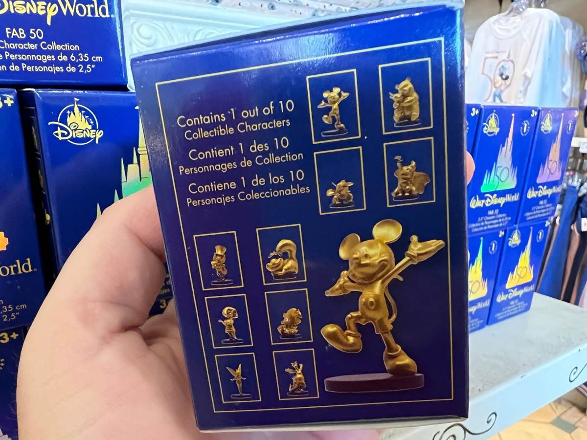 The blind packs contain one mystery golden miniature figure inspired by the statues scattered across the parks for the 50th Anniversary of Walt Disney World.