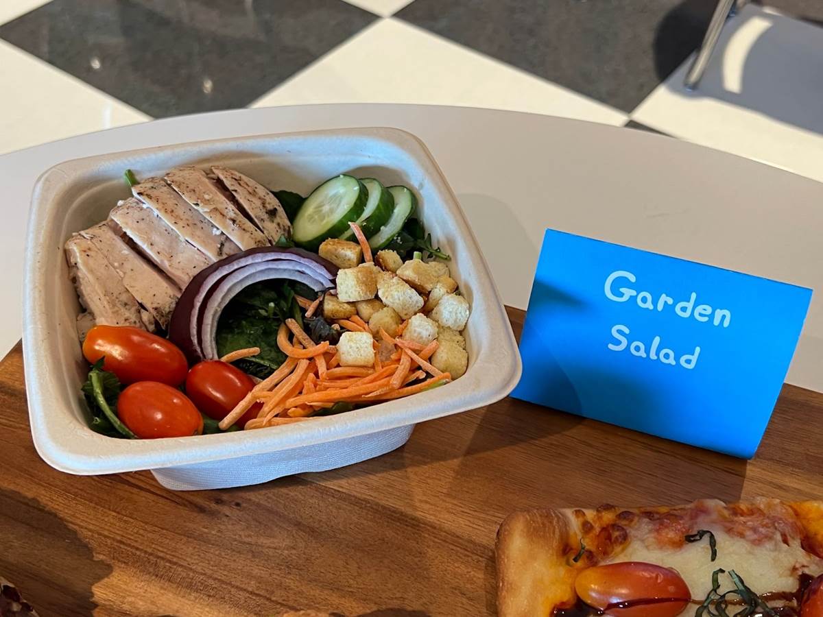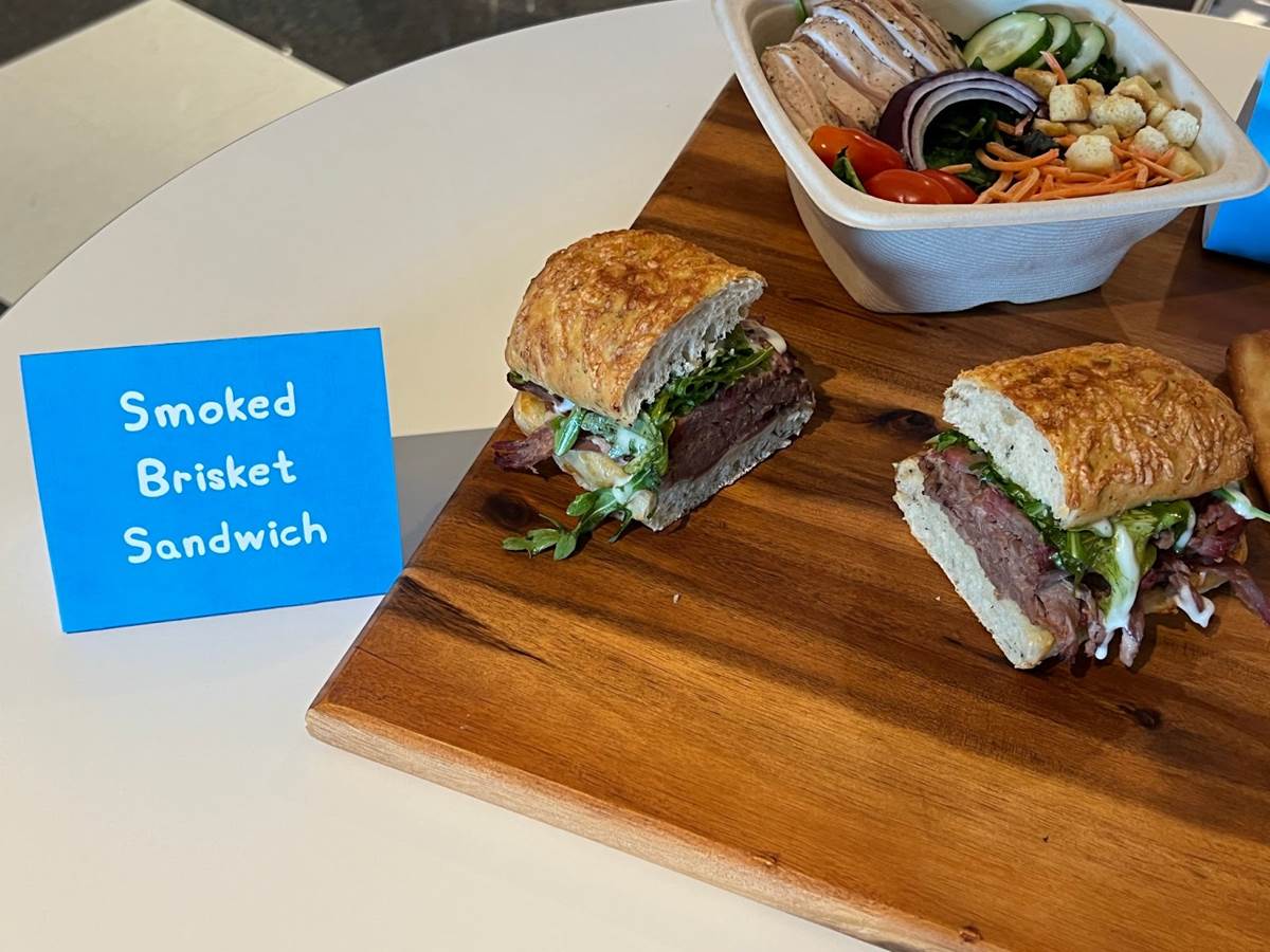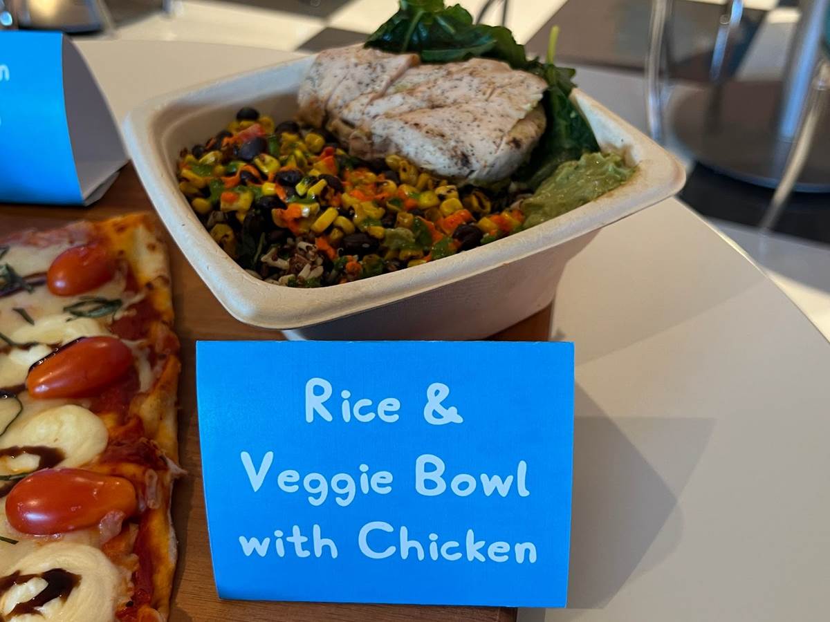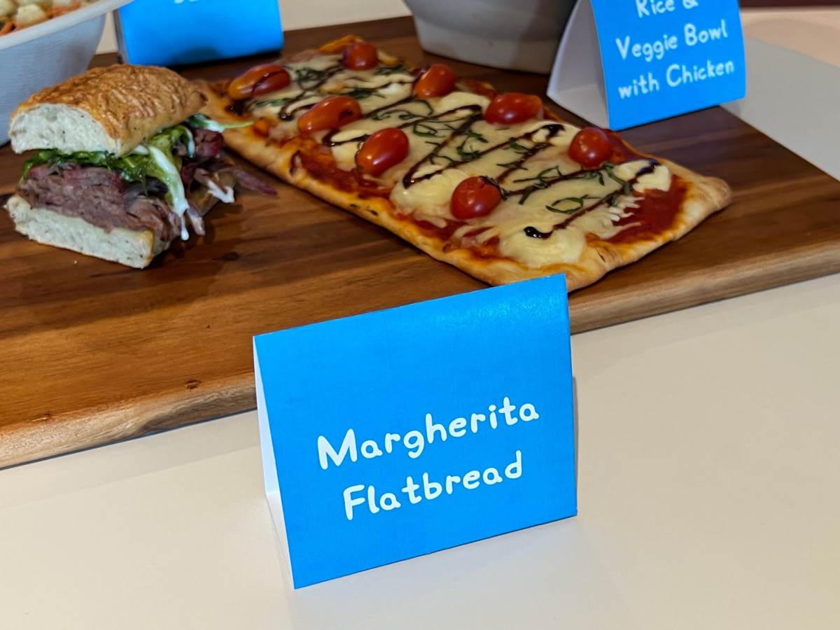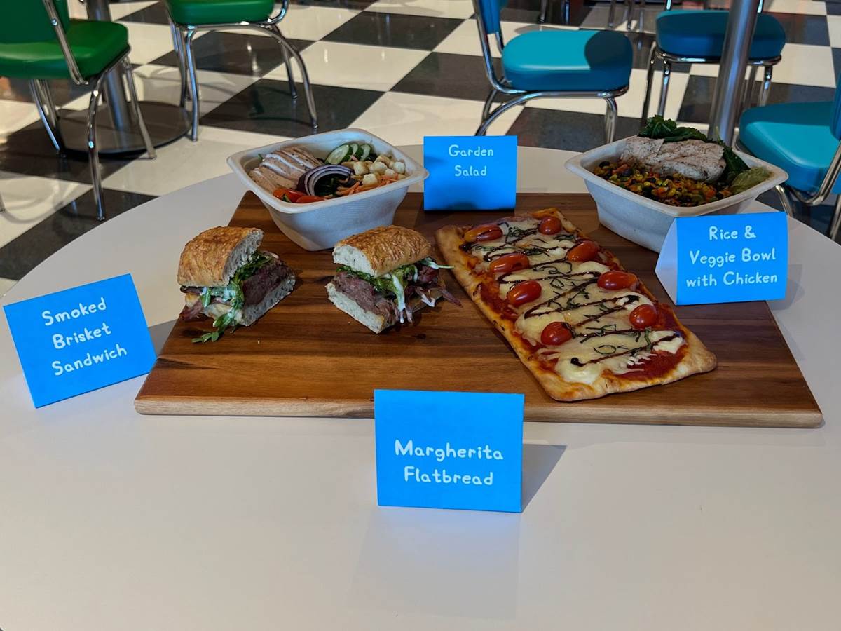 Food offerings at Miss Rabbit’s Diner include: Smoked Brisket Sandwich, Garden Salad, Margherita Flatbread and a Rice & Veggie Bowl with Chicken.