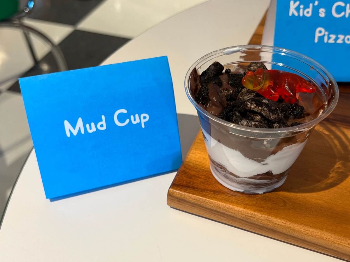 Dessert offerings include: Muddy Puddle Milkshakes that come complete with sprinkles and a chocolate chip cookie on top and a Mud Cup which consists of marshmallow, chocolate pudding and Oreo crumbles with gummy worms on top.