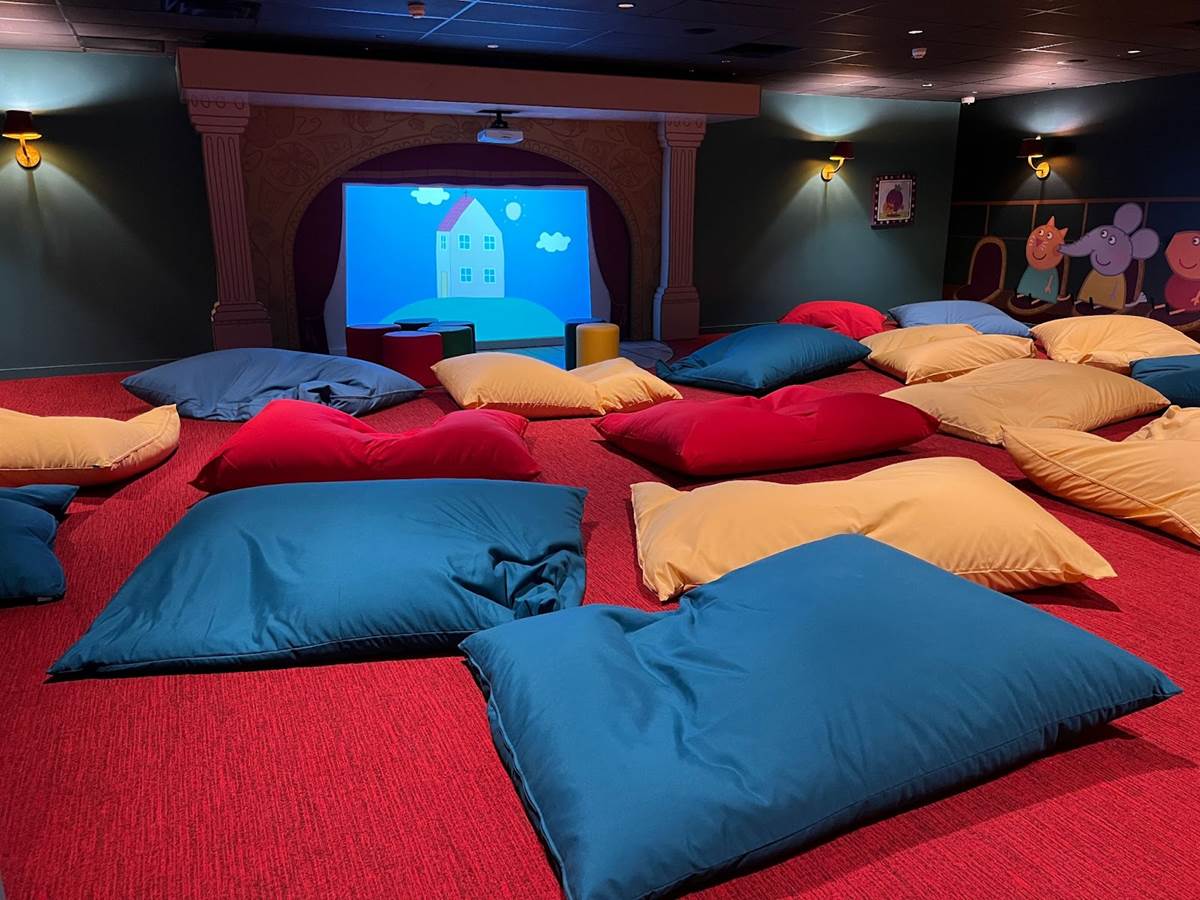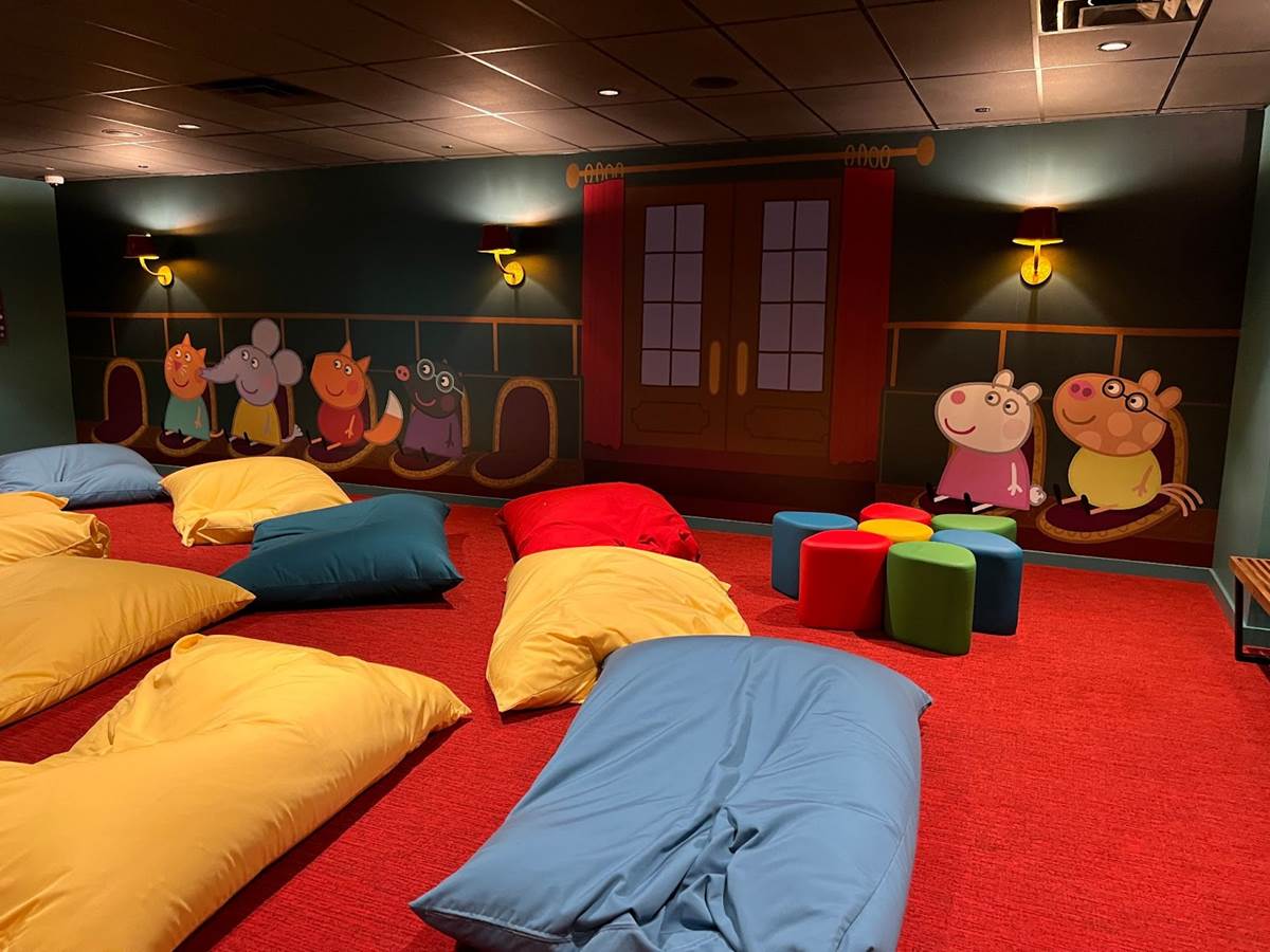 Take a break from the outdoor fun and relax on a beanbag with your little piggies to unwind while watching some of your favorite episodes of Peppa Pig on the big screen in our oinktastic indoor cinema!
