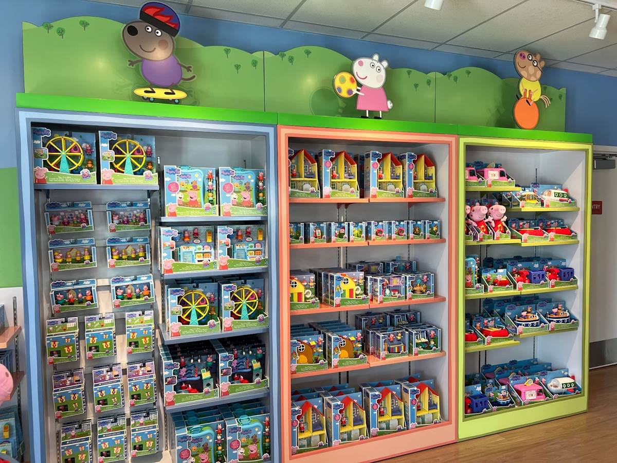 Some of the merchandise offerings inside the store at the Peppa Pig Theme Park.