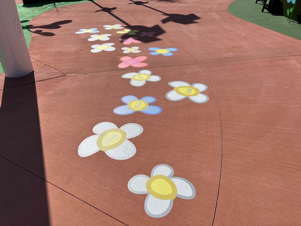 The Muddy Puddles Splash Pad is a lively play area with spouting fountains, slides and other watery surprises to keep the play super splashy and fun!