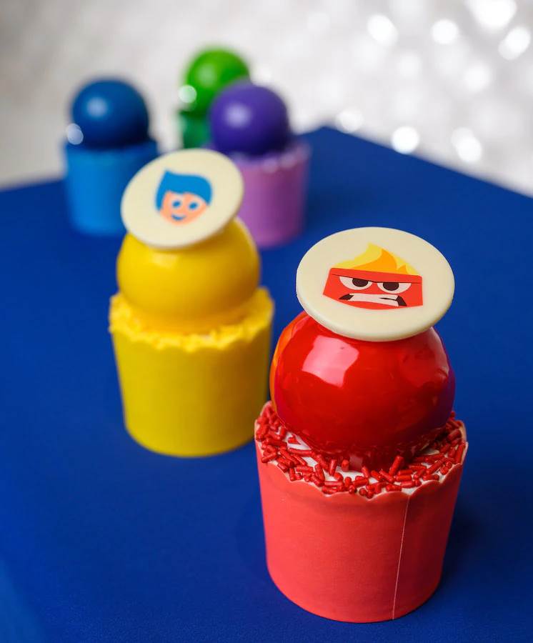 - Signature treats inspired by the film will include colorful cupcakes that evoke the five emotions: Joy (lemon), Sadness (blueberry), Disgust (pistachio), Anger (red velvet) and Fear (bubble gum). Chocolate Memory Orbs come filled with sweet candy remembrances. Specialty macarons and cake pops will join the assortment of handcrafted truffles, designer cookies, indulgent brownies and vibrant candy offerings.