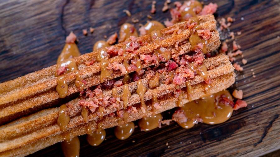 - Maple Bacon Churro: Cinnamon sugar, maple icing, and crumbled bacon (available with Sip & Savor Pass)